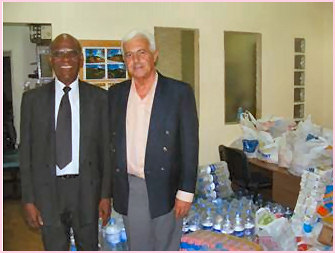 El Sr. Vicecónsul de Haití Claude Volcy y el Sr. Julio Ambrosio junto a las donaciones que se envian