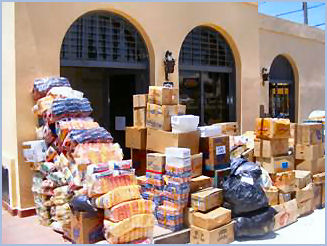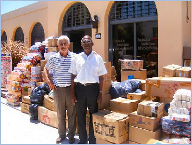 El Sr. Vicecónsul de Haití Claude Volcy y el Sr. Julio Ambrosio junto a las donaciones que se envian